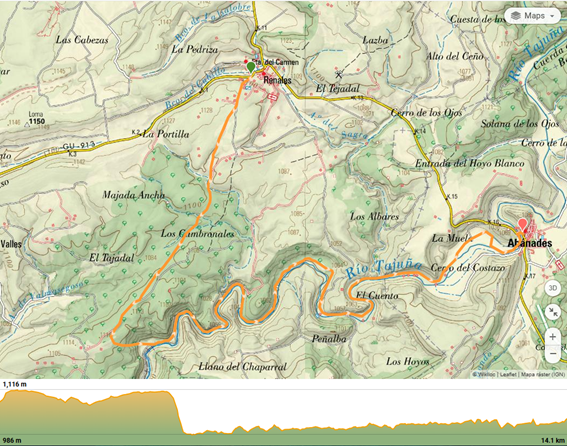 Ruta señalizada por el curso del río Tajuña. Se inicia en Renales, ascendiendo por el camino de Pozo Cantal hasta las hoces fluviales, con paredes de hasta cien metros de altura.